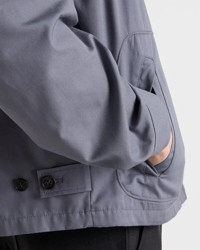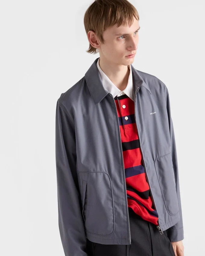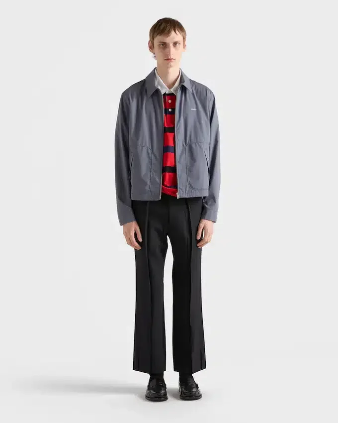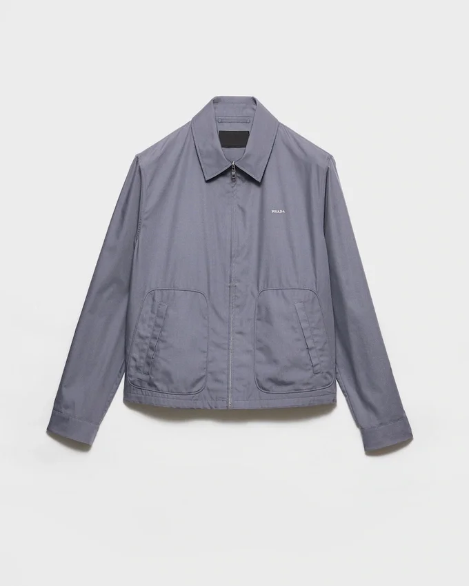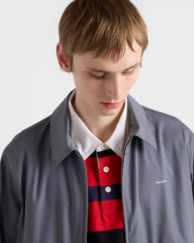 This Blouson Jacket Made of Technical Cotton Has a Sleek Silhouette with Sporty Style. The Style Defined by a Boxy Cut with Shirt-Style Collar is Decorated with the Iconic Printed Prada Logo.