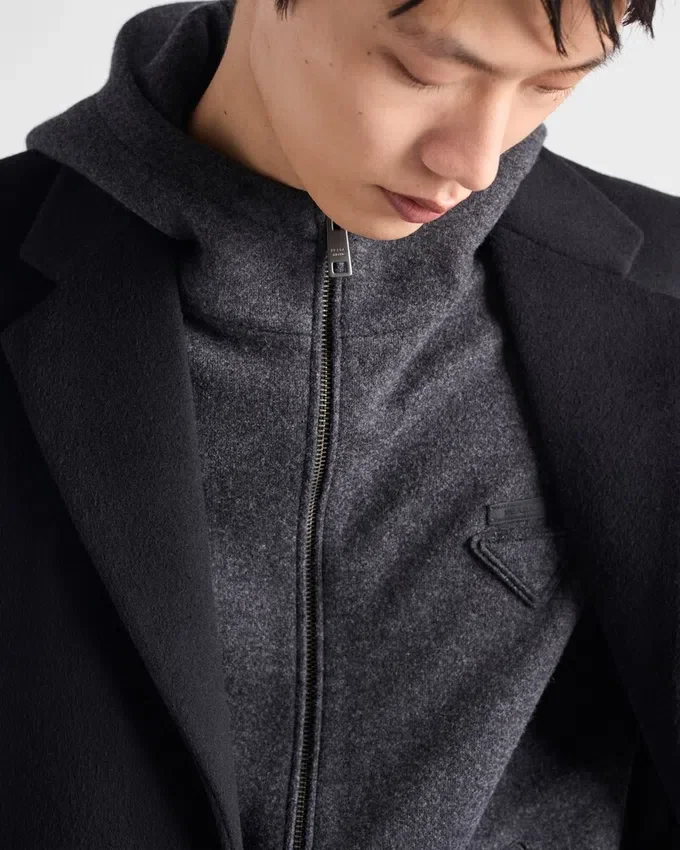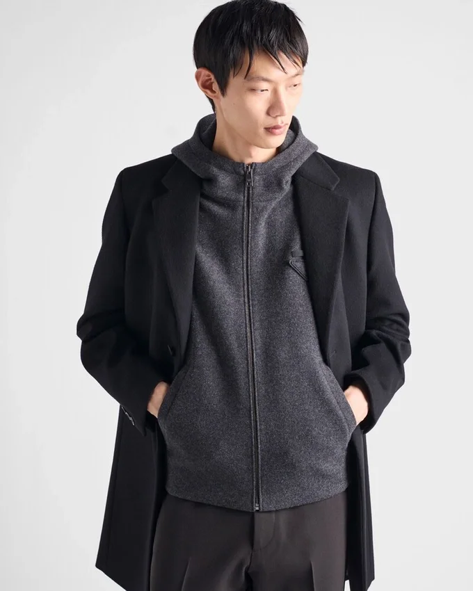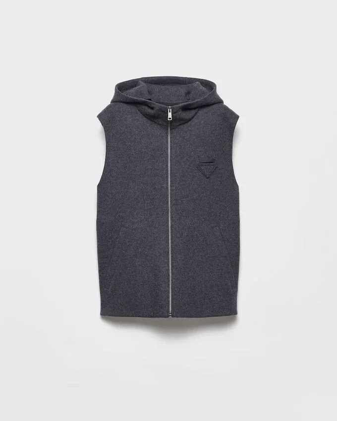 This Vest with a Hybrid Design Combining Elegance and Sport Has a Soft Silhouette with Hood and Zipper and is Made from a Premium Blend of Wool and Cashmere. The Sleek Tonal Triangle Logo Completes the Versatile, Contemporary Garment.