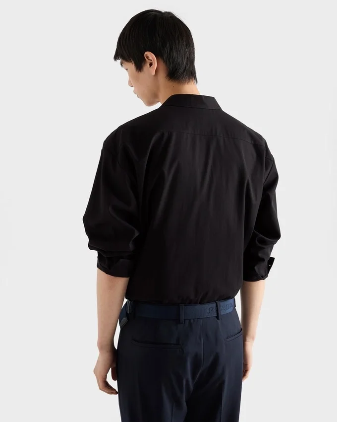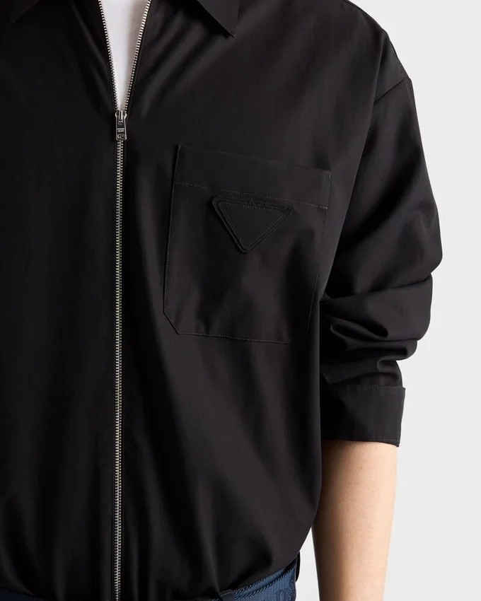 The Zipper Shirt, a Prada Wardrobe Classic, is a Garment with Minimalist and Contemporary Style. The Cotton Shirt Has a Light Silhouette with Clean Lines Completed by the Tonal Triangle Logo.