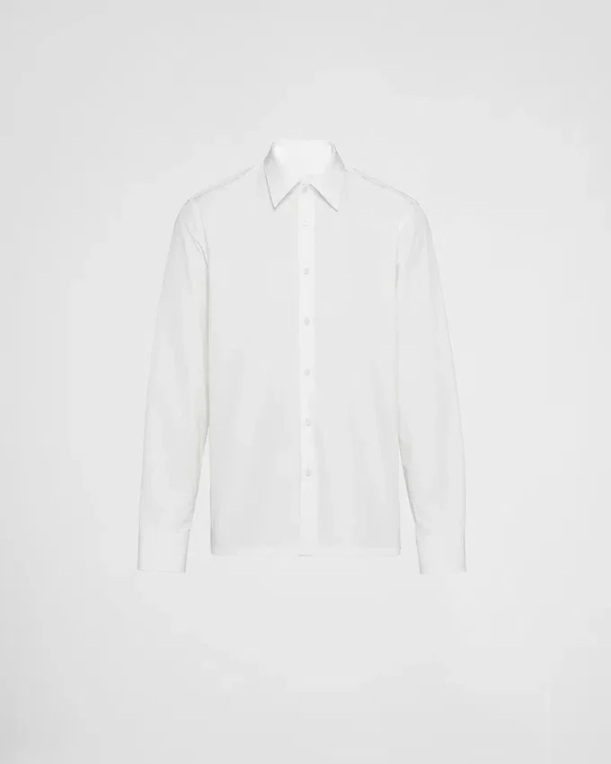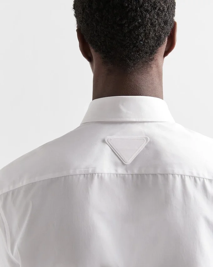 This Straight-Cut Cotton Shirt Offers Timeless Allure. Classic Collar and Opening with Covered Buttons. The Fabric Triangle Logo Patch on the Back Adds an Original Touch.