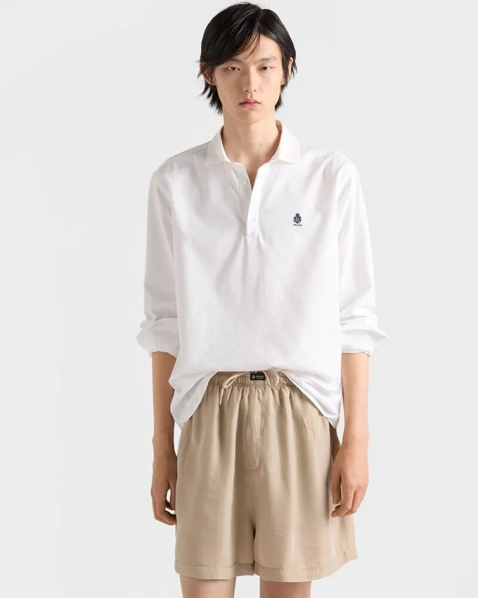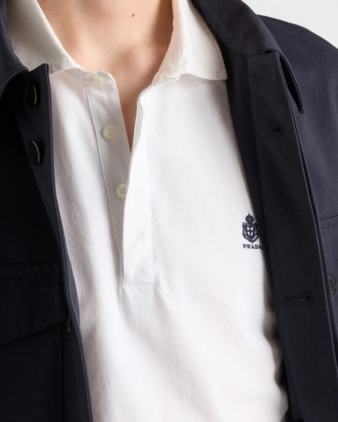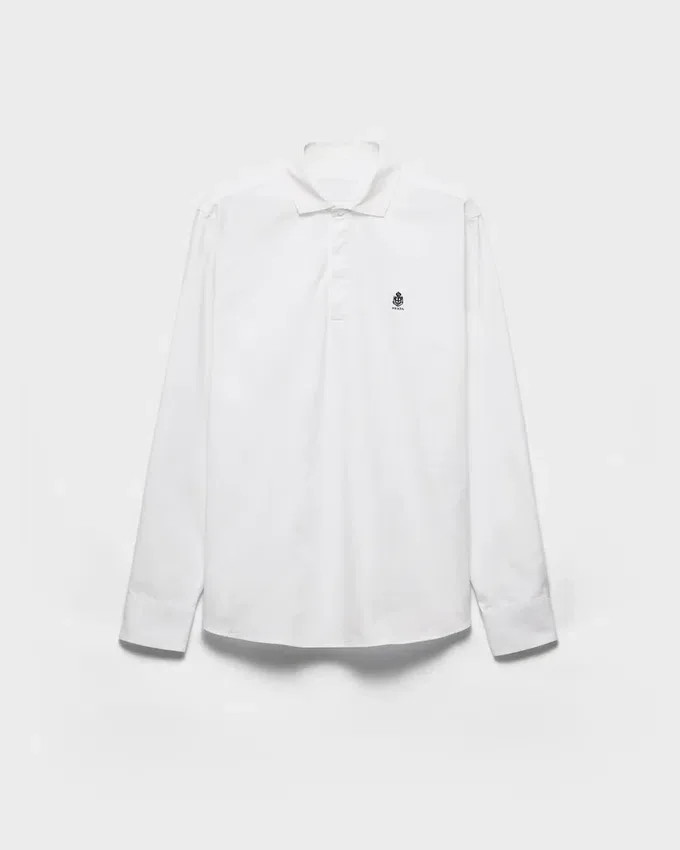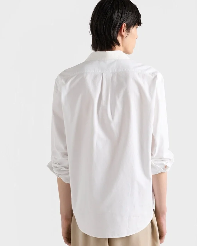 The Distinctive, Minimalist Logo in a Contrasting Color That Enriches This Shirt with a Classic Cut Introduces a New Form of Expression for the Brand Identity. A Symbol of Authenticity and Connection, It Combines Craftsmanship and Modernity in a Balance of Understatement and Character, Embodying the Harmonious Strength of Prada Elegance.