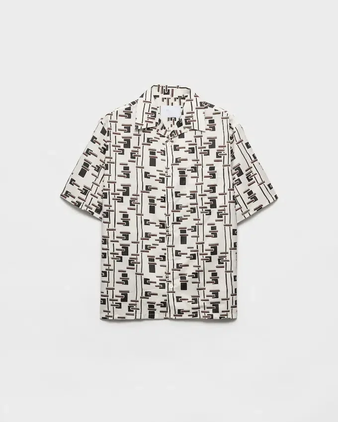 A Modernist Print Meets a Precise and Iconic Cut of the Bowling Silhouette in This Short-Sleeved Shirt. The Triangle Logo Adds a Distinctive Note to the Garment.