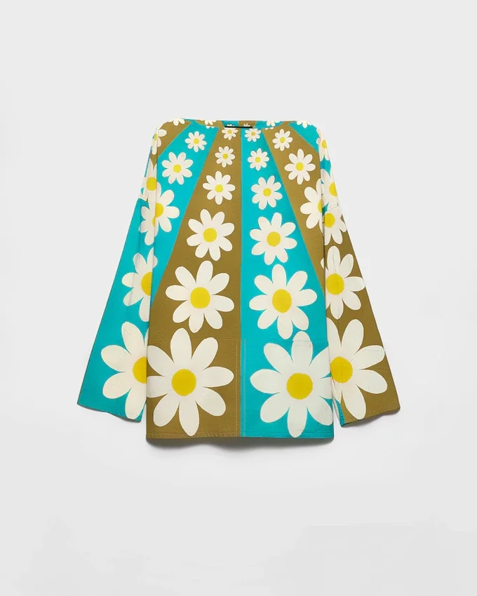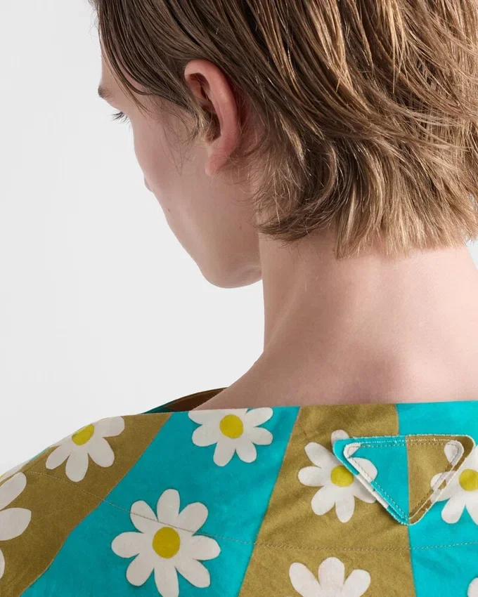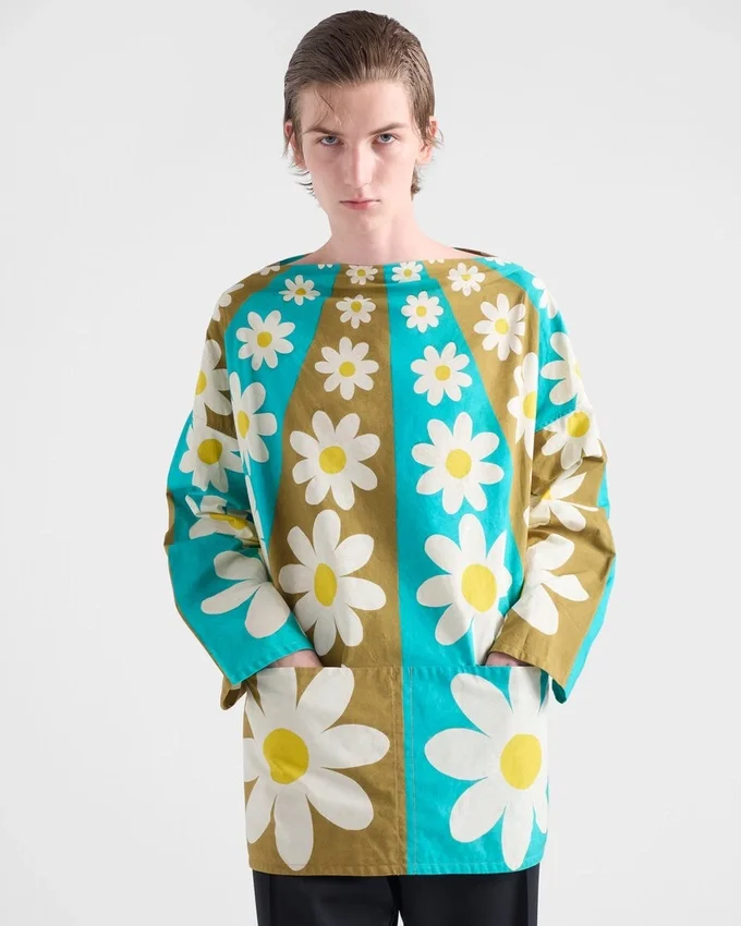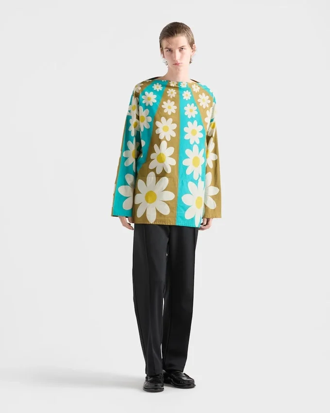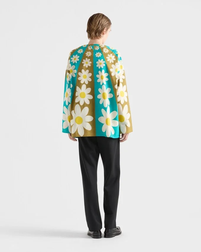 A Surprisingly Colorful Floral Print Inspired by Retro Motifs Animates This Oversized Shirt. Made of Cotton, It Expresses Prada’s Modernist Essence.