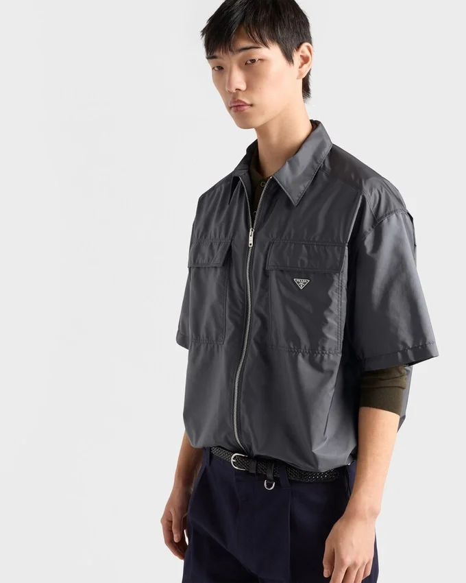 This Short-Sleeved Shirt Combines Utility Details with Sporty Elements in a Contemporary, Minimalist Design. The Light Silhouette in Re-Nylon is Characterized by Boxy Lines and Enriched with Large Pockets on the Front, While the Zipper Closure Adds a Pragmatic and Simple Touch. The Enameled Metal Triangle Logo Completes the Look with Its Iconic and Distinctive Signature. For Sustainable Care to Preserve the Product’s Characteristics and Reduce Microfiber Shedding, We Recommend Not Washing the Item Too Often. Let the Product Air out After Every Use and Follow the Washing Instructions on the Label.