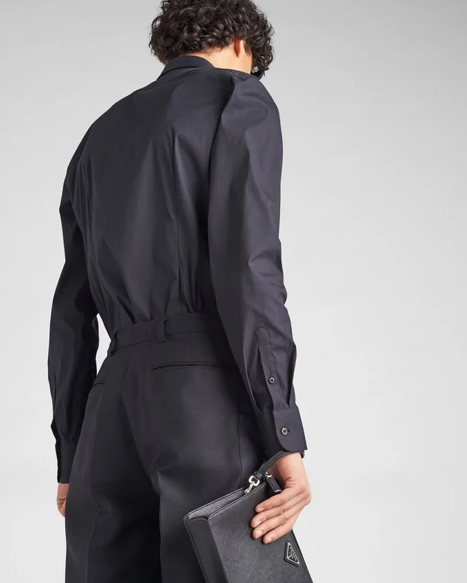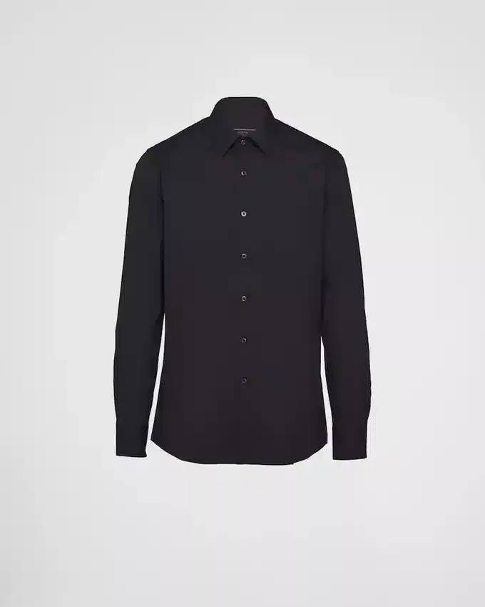 This Shirt is Crafted in Stretch Poplin with Classic Collar, Long Sleeves and Mother-Of-Pearl Button Fastening on Front. Darts on Back for a Slim Fit, Round Hem.
