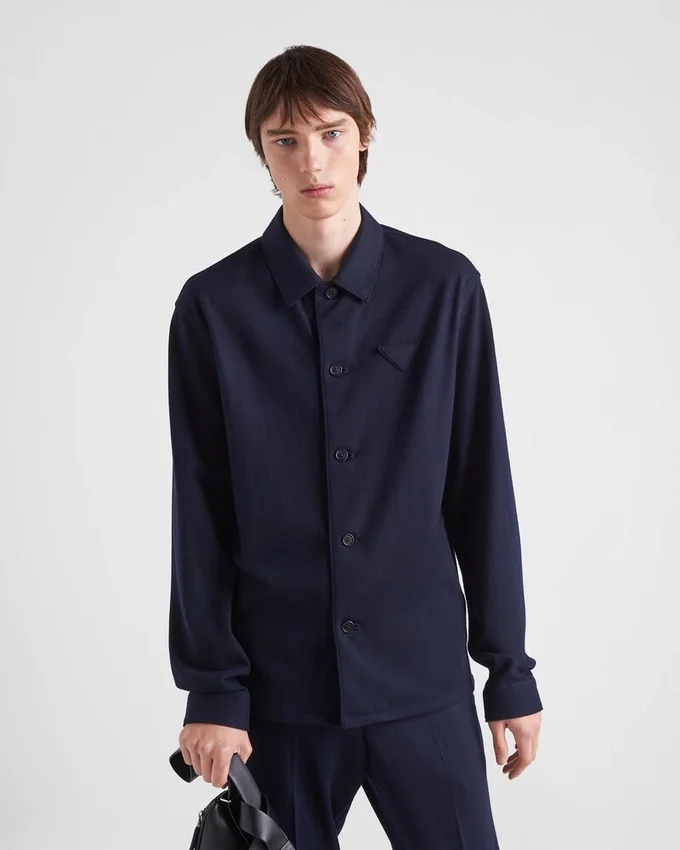 Sleek and Refined, This Shirt is Characterized by Its Original Horn Button Closure That Underlines the Hybrid Soul of the Garment That is Decorated with the Triangle Logo Reinterpreted as a Fabric Patch.