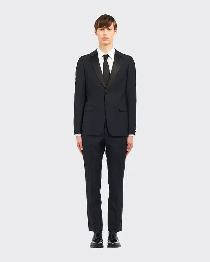 The Elegance of This Slim-Fit Single-Breasted Tuxedo in Wool and Mohair is Enhanced by Its Silk Satin Lapels, Buttons and Waistband.