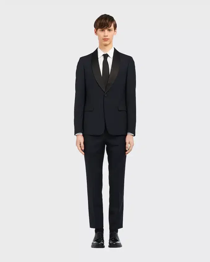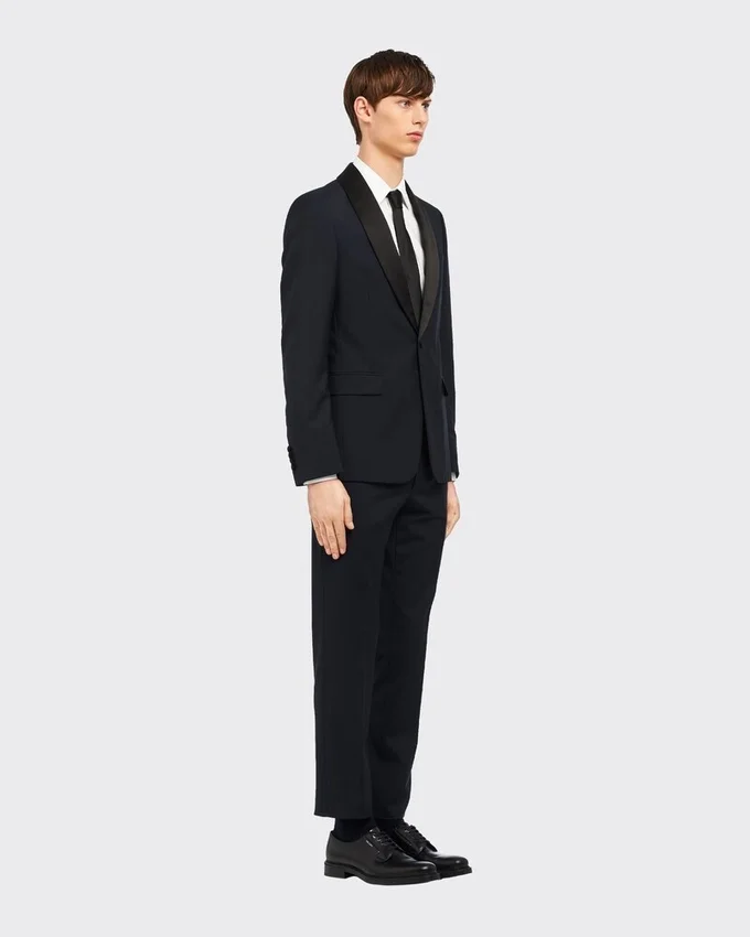 The Elegance of This Slim-Fit Single-Breasted Tuxedo in Wool and Mohair is Enhanced by Its Silk Satin Lapels, Buttons and Waistband.