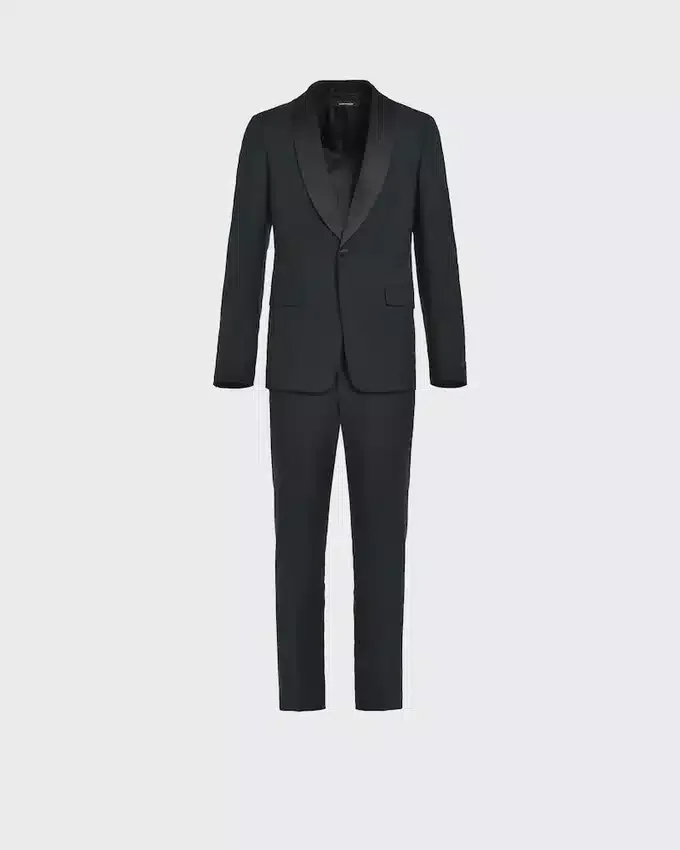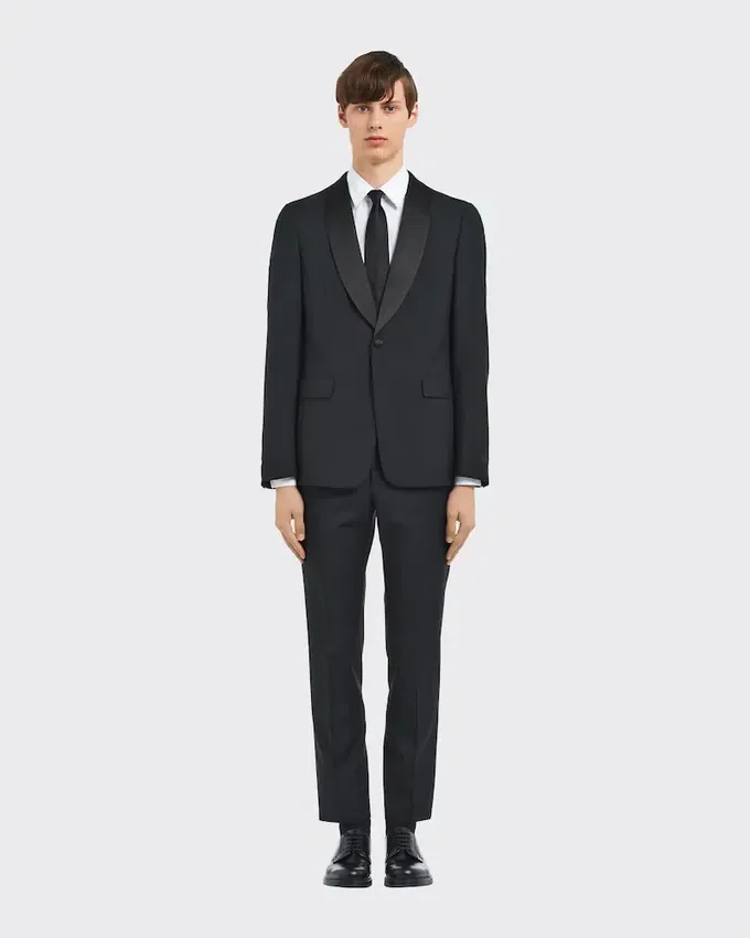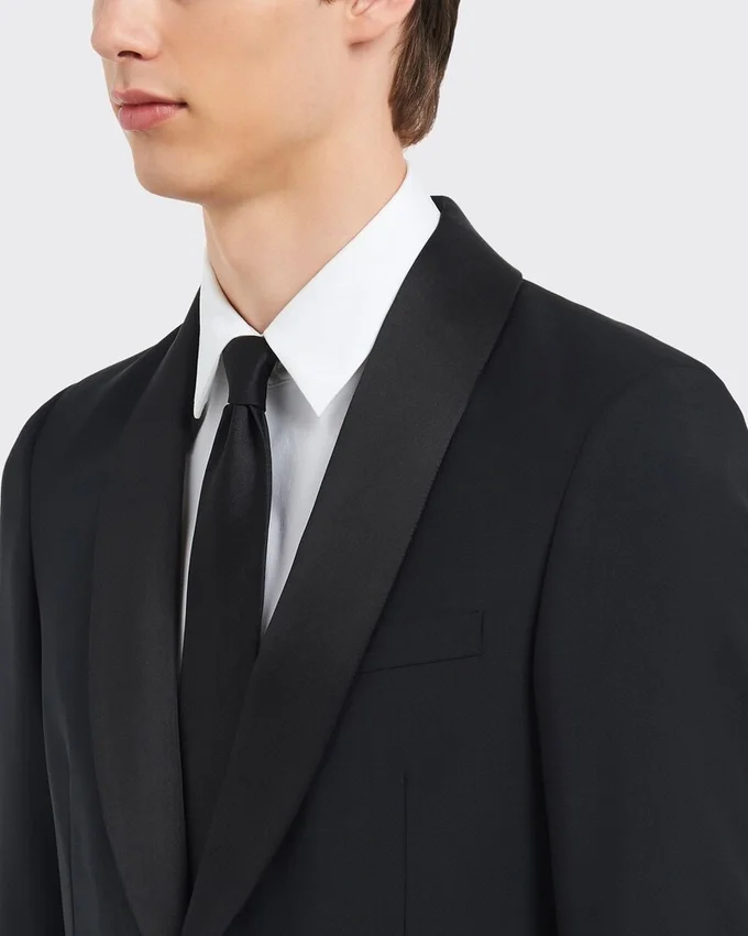 The Elegance of This Slim-Fit Single-Breasted Tuxedo in Wool and Mohair is Enhanced by Its Silk Satin Lapels, Buttons and Waistband.