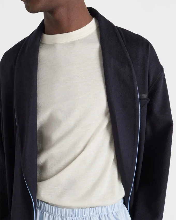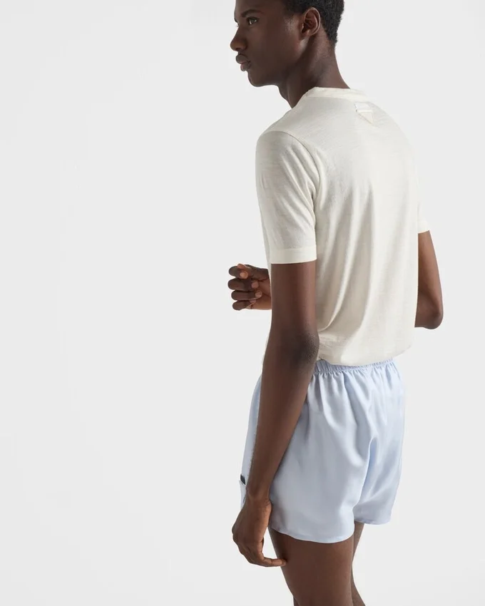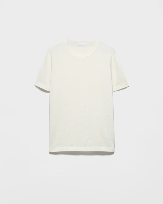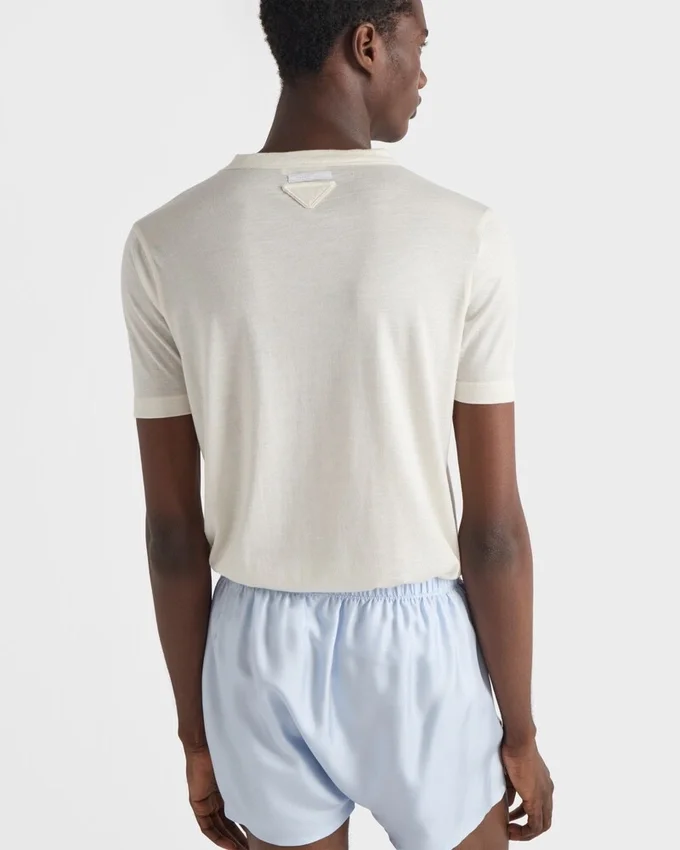 A Fine Cashmere and Silk Blend Gives This Tee a Warm, Lightweight Texture and Refined Effect. The Short-Sleeved Silhouette Characterized by a Slim Fit is Decorated with the Tonal Triangle Logo.