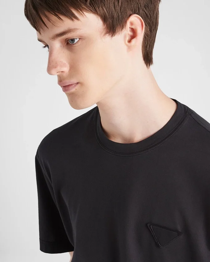 This Short-Sleeved Cotton Tee Has an Oversized Fit and Ribbed Knit Crew Neck. The Style is Decorated with the Iconic Triangle Logo on the Front.