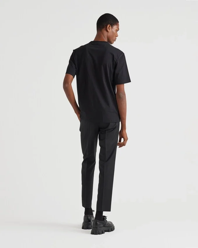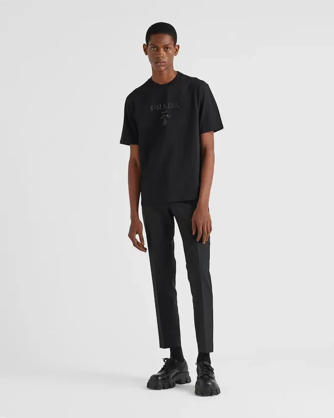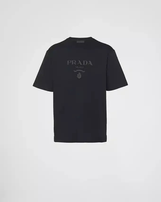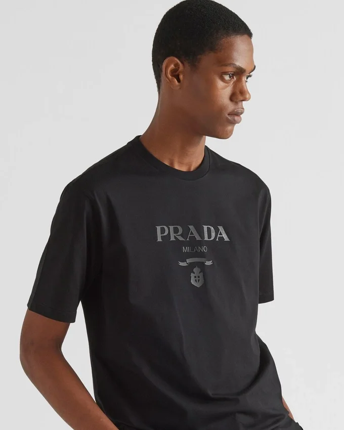 An Essential Item of the Brand, the Prada Jersey T-Shirt Embodies the Luxury of Simplicity That Becomes an Attitude and Search to Reinvent the Bases and Propose New Meanings. The Design is Accented with the Brand’s Emblematic Lettering Logo Presented Here in a Silicone Version.
