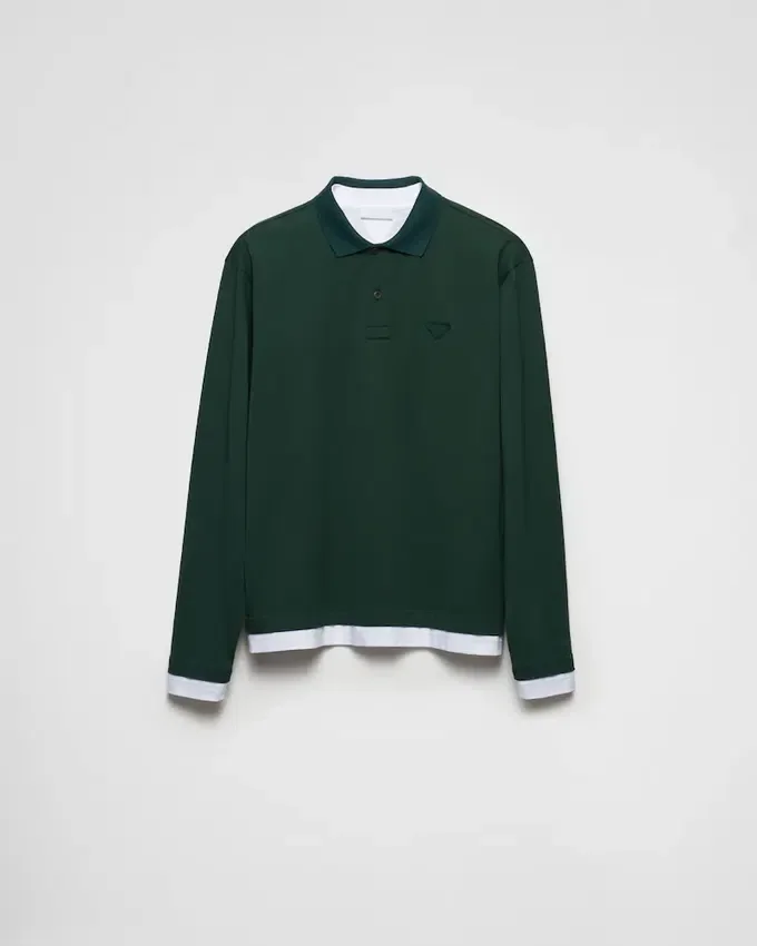 This Cotton Polo Shirt is Animated by Layering and Contrasts That Add an Original Touch to the Casual Silhouette. The Long-Sleeved Style Defined by a Relaxed Fit is Decorated with the Emblematic Fabric Triangle Logo.