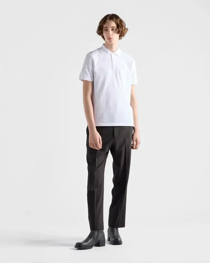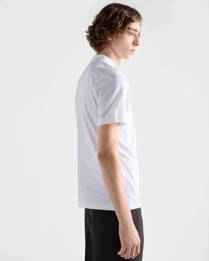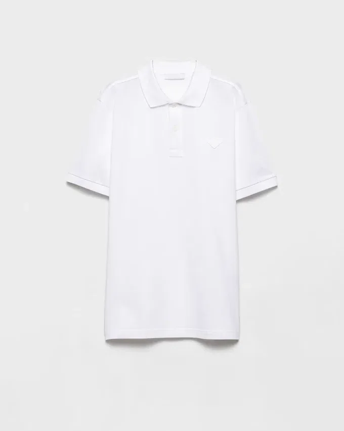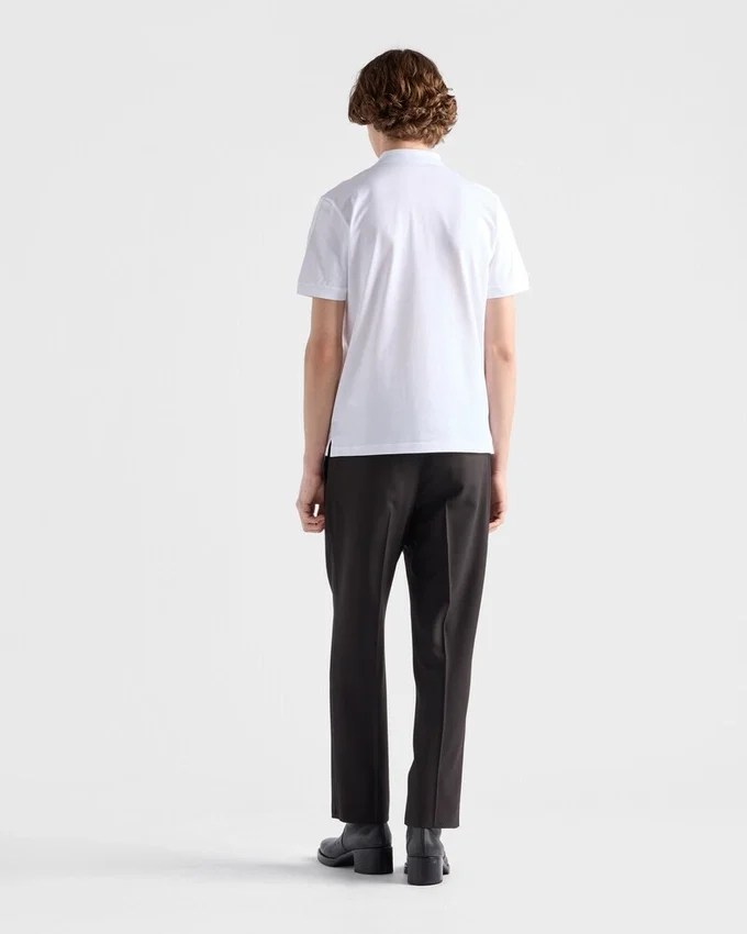 A Sporty, Casual Silhouette Defines This Piqué Polo Shirt with Classic Lines. The Short-Sleeved Style with Lustrous Mother-Of-Pearl Buttons is Decorated with the Iconic Tonal Triangle Logo Reinterpreted with a Conceptual Design.