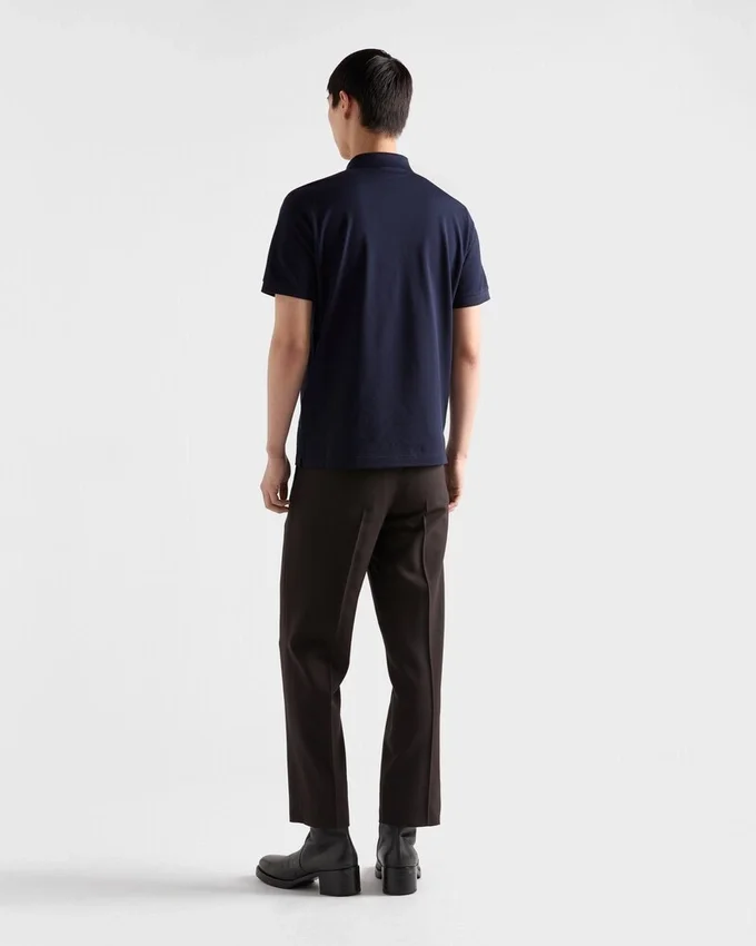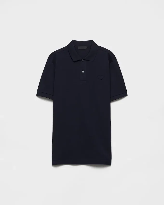 A Sporty, Casual Silhouette Defines This Piqué Polo Shirt with Classic Lines. The Short-Sleeved Style with Lustrous Mother-Of-Pearl Buttons is Decorated with the Iconic Tonal Triangle Logo Reinterpreted with a Conceptual Design.