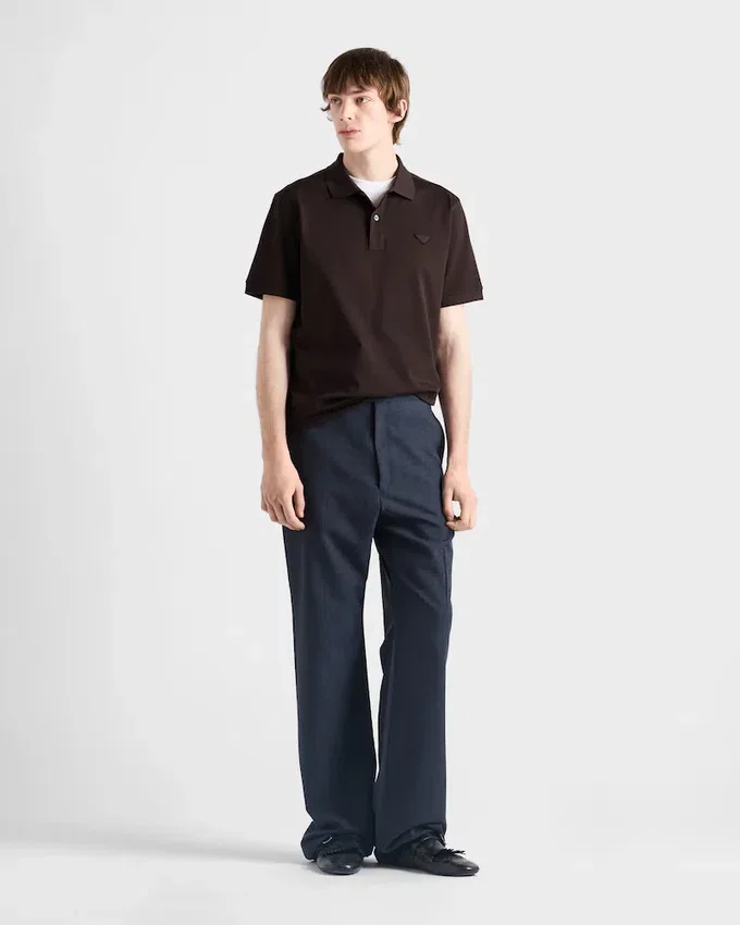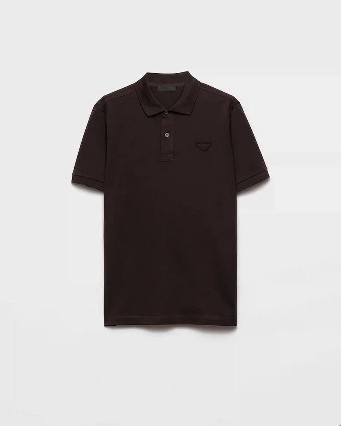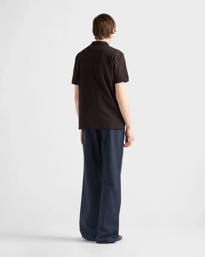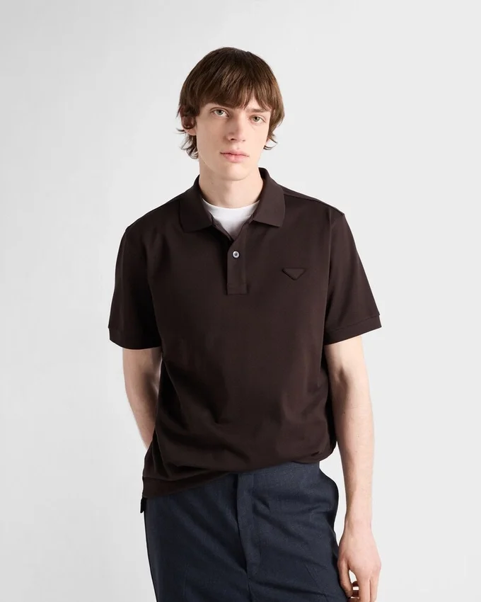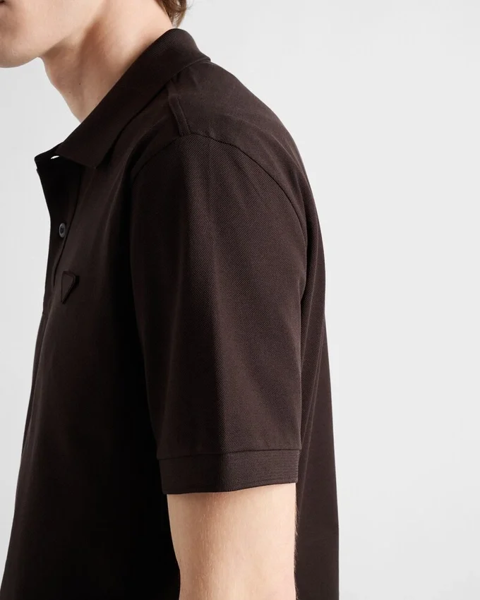 A Sporty, Casual Silhouette Defines This Piqué Polo Shirt with Classic Lines. The Short-Sleeved Style with Lustrous Mother-Of-Pearl Buttons is Decorated with the Iconic Tonal Triangle Logo Reinterpreted with a Conceptual Design.