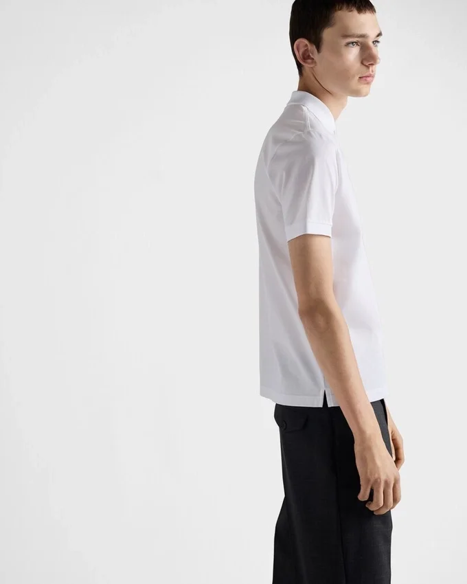 This Piqué Polo Shirt, a Classic Presented in Its Simplest Form, Embodies Casual Chic Style. The Short-Sleeved Style is Completed with the Iconic Geometric Shape of the Tonal Triangle Logo.