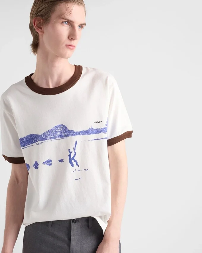 A Print with Delicate Lines Captures the Energy of the Summer Season, Giving This Cotton Tee a Unique Character. The Slim Fit Style Has Contrasting Trim on the Crew Neck and Edges.