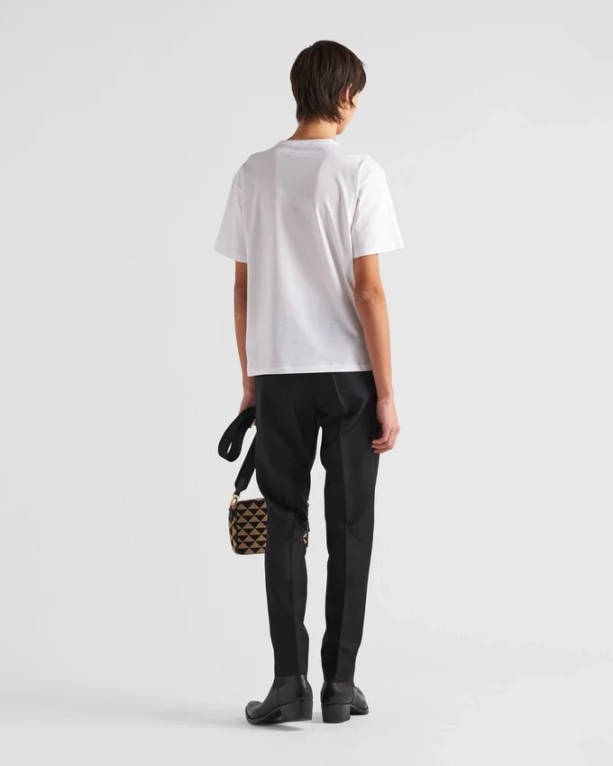 The Minimalist Design of the Stretch Cotton Tee is Characterized by the Double Fabric That Accents the Crew-Neck, Sleeves, and Hem. The Printed Logo Under the Crew-Neck Embellishes the Garment.