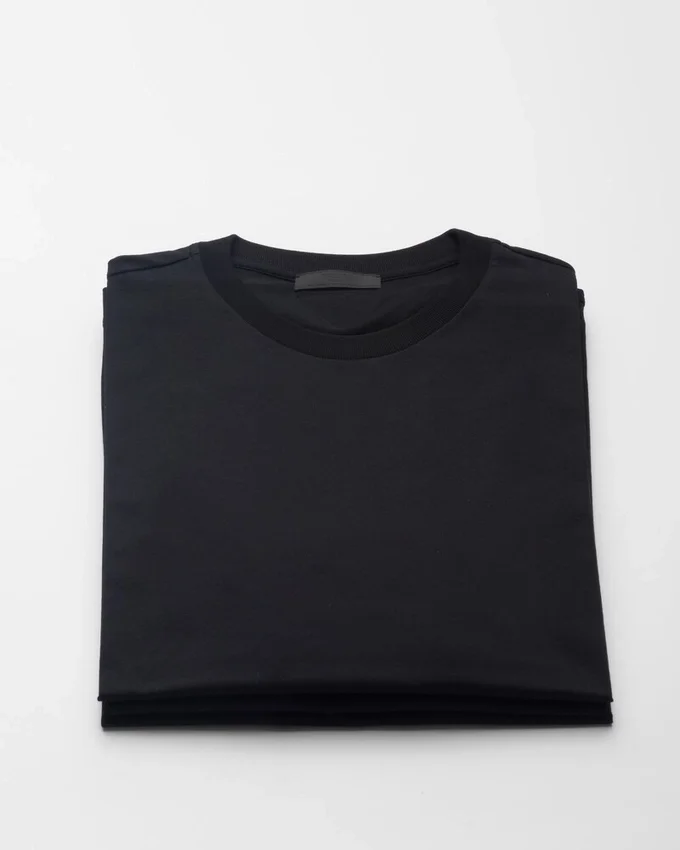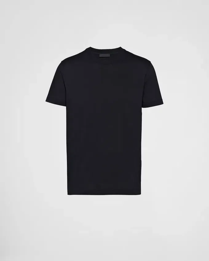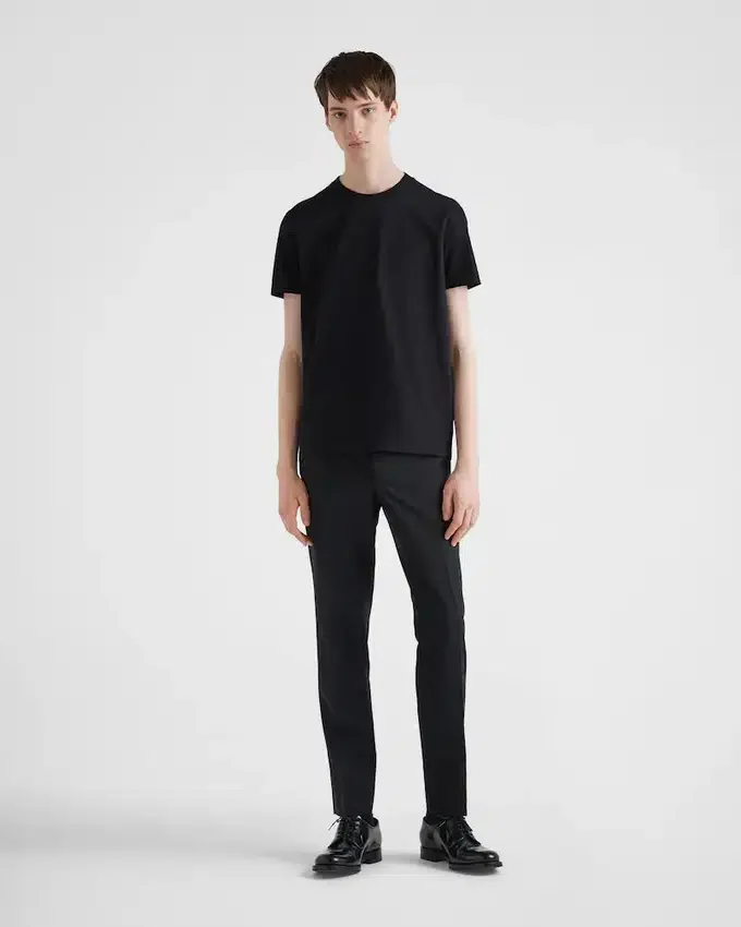 This Short-Sleeved Cotton Tee with a Slim Fit is Enhanced with a Ribbed Knit Crew-Neck and Triangle Logo on the Back.