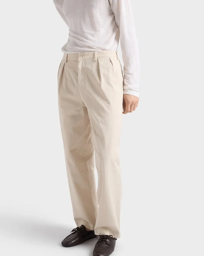 Reinterpretation of a Summer Wardrobe Classic, These Pants Have a Wide Leg and Relaxed Fit. The Vintage Finish Created Using Artisan Processes on the Finished Garment Enriches the Versatile Texture of Cotton and Gives the Pants Casual Charm and Authentic Style.
