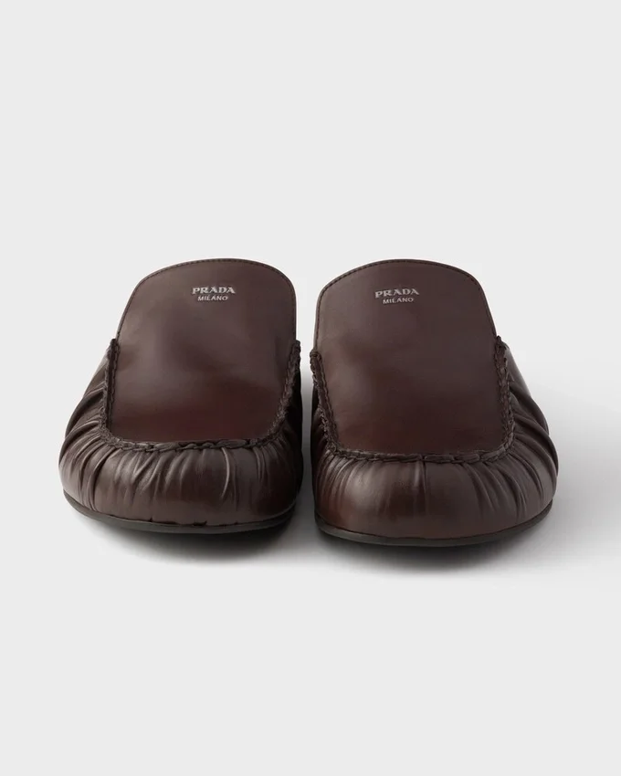 An Unconventional, Gathered Design Renews the Classic Mule Silhouette. The Leather Shoe is Embellished with the Lettering Logo on the Front.