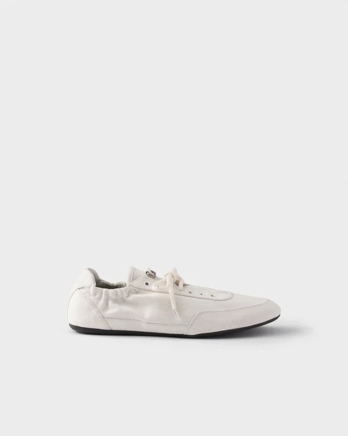 Collapse Sneakers Embody Prada’s Sporty and Artisanal Soul with a Light, Flexible and Deconstructed Design. The Shoes Are Reinterpreted in Denim with a Vintage Finish That Emphasizes Their Casual Character and Relaxed Attitude.