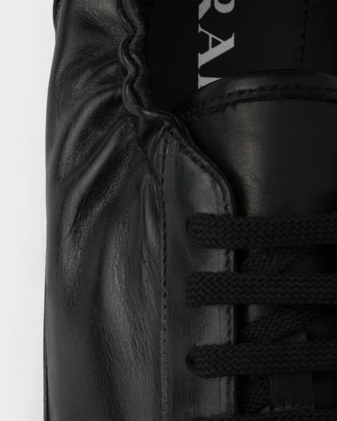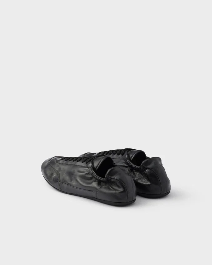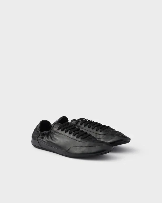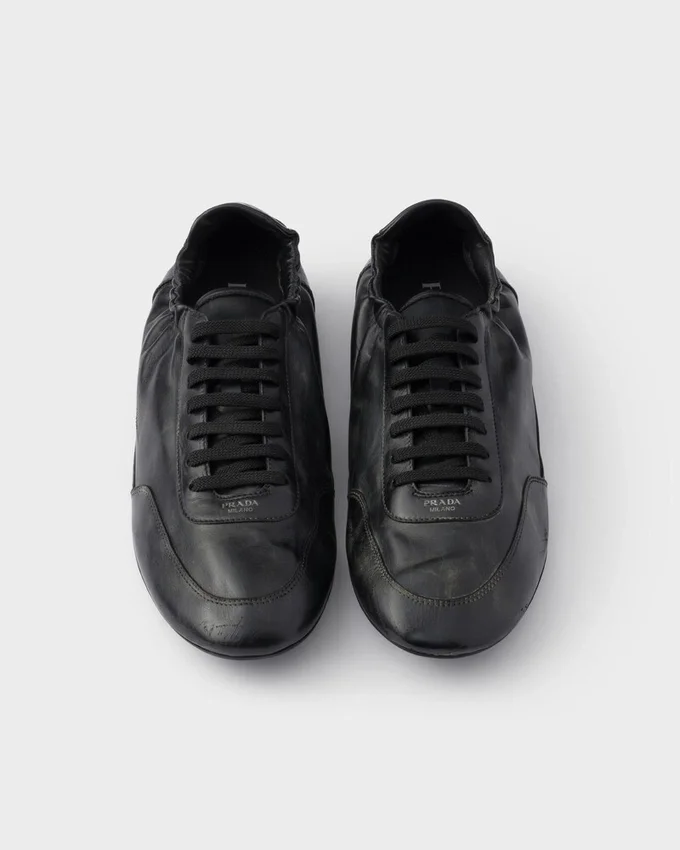 The Light, Design of Collapse Sneakers Embodies Prada’s Sporty and Artisanal Soul. The Shoes Made of Leather with a Vintage Treatment Are Enhanced by Their Thin Soles and Elasticized Sides That Emphasize the Softness and Flexibility of the Silhouette.