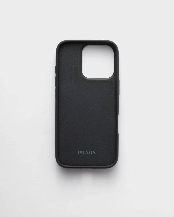 Emblematic Saffiano Leather, Characterized by the Distinctive Crosshatch Texture with a Waxed Finish, Enriches This Elegant Case for the Iphone 16 Pro, Decorated with the Triangle Logo.