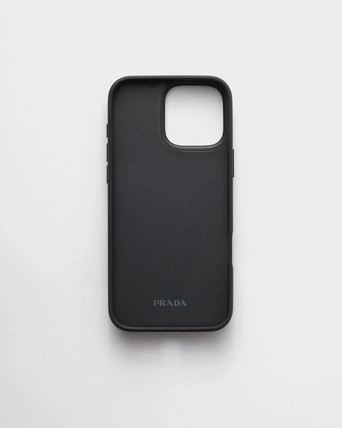 Emblematic Saffiano Leather, Characterized by the Distinctive Crosshatch Texture with a Waxed Finish, Enriches This Elegant Case for the Iphone 16 Pro Max, Decorated with the Triangle Logo.