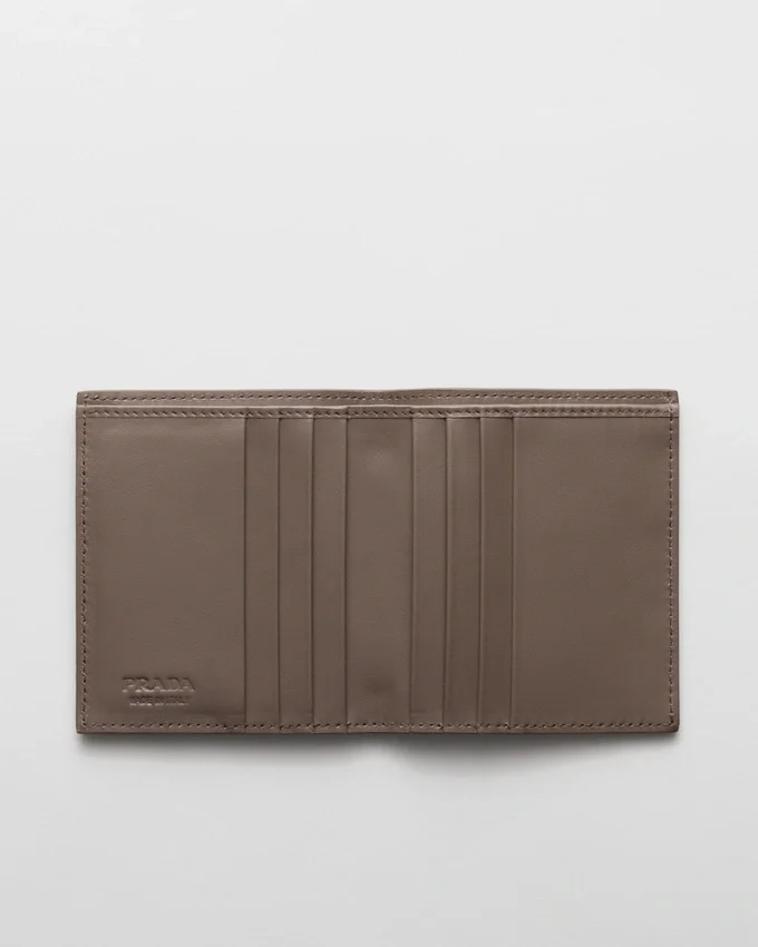 This Leather Wallet, Which Stands out for Its Sleek Design, Has Eight Card Slots and One Bill Compartment. The Enameled Metal Triangle Logo Completes the Accessory with a Distinctive Touch.