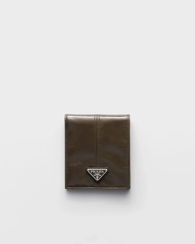 Sleek Lines and Iconic Geometric Shapes Define This Wallet with a Classic Design Made of Elegant Shiny Leather with a Modern, Sophisticated Character.