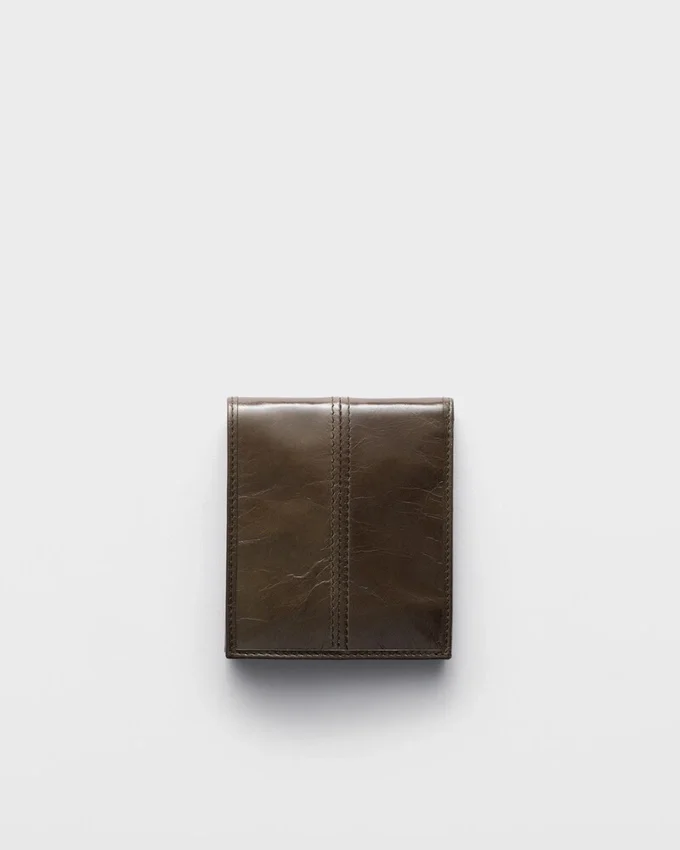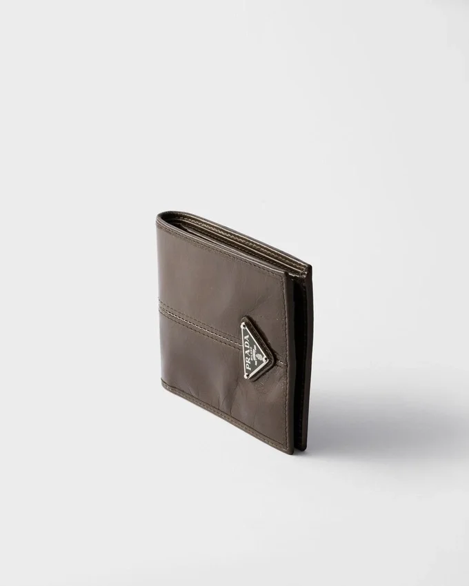 Sleek Lines and Iconic Geometric Shapes Define This Wallet with a Classic Design and Coin Pocket, Made of Shiny Leather and Decorated with the Enameled Metal Triangle Logo.