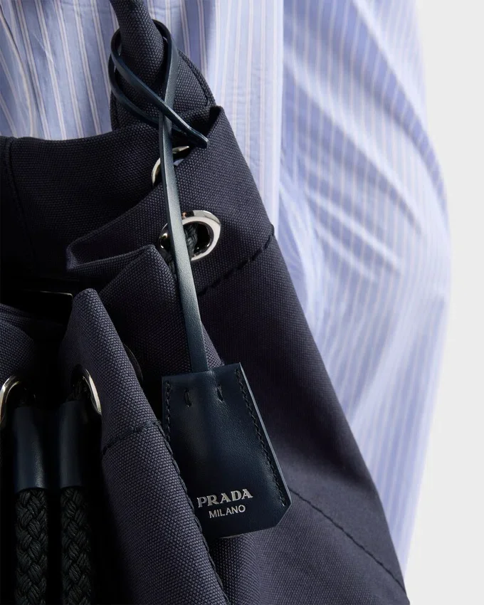 This Canvas Drawstring Duffle Bag with a Light Design and Sporty Character is Characterized by Its Adjustable Shoulder Strap and Enriched with Leather Details. The Tonal Embroidered Lettering Logo Gives the Accessory a Distinctive, Timeless Style.