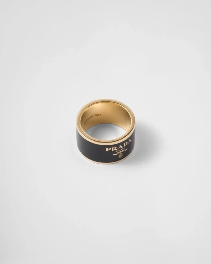 This Enameled Metal Band Ring with a Sleek, Contemporary Line is Decorated with the Lettering Logo in a Contrasting Color That Completes the Accessory with an Iconic Note.