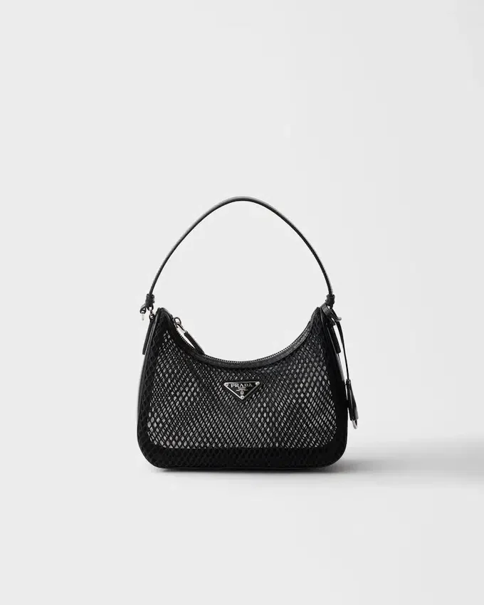 New Lightness Transforms the Iconic Silhouette of the Prada Re-Edition 2005 Bag. The Unique Style is Made of Mesh Fabric and Brushed Leather. The Combination of Materials Reflects the Dual Essence of the Bag, Underlined by the Sporty Shoulder Strap That Alternates, Depending on the Occasion, with an Elegant Chain Handle.