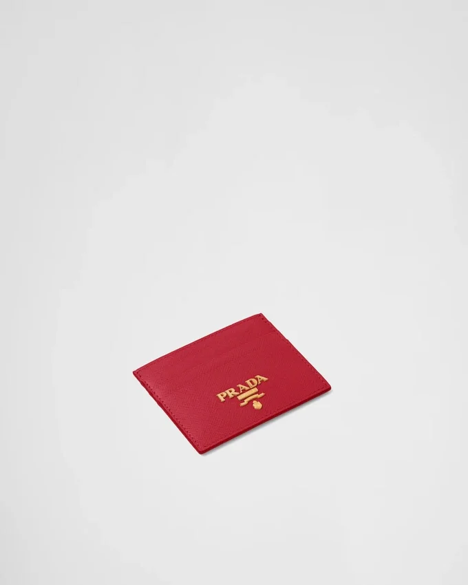 This Saffiano Leather Card Holder Expresses Elegant Simplicity. It is Decorated with the Metal Logo.