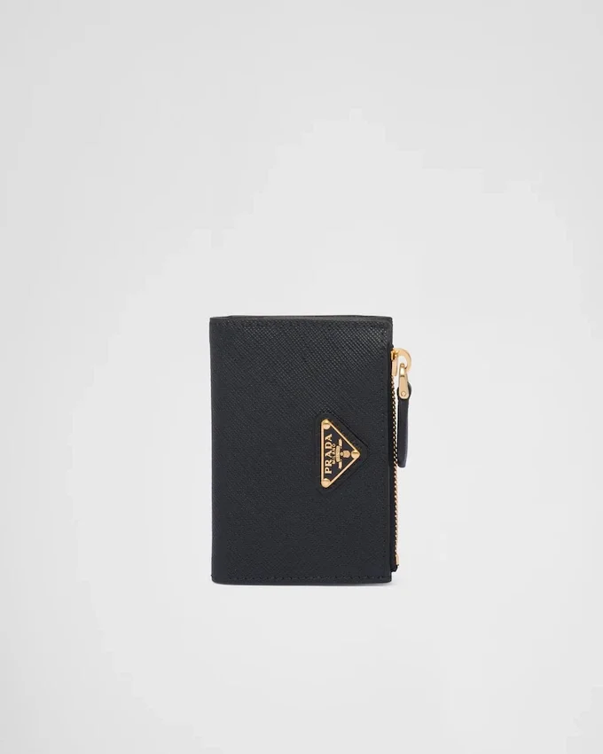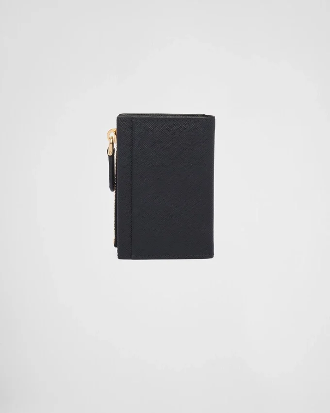 Refined Card Holder with a Modern Design in Saffiano Leather Decorated with the Iconic Enameled Metal Triangle Logo, Which First Appeared on Trunks Designed by Mario Prada In 1913.