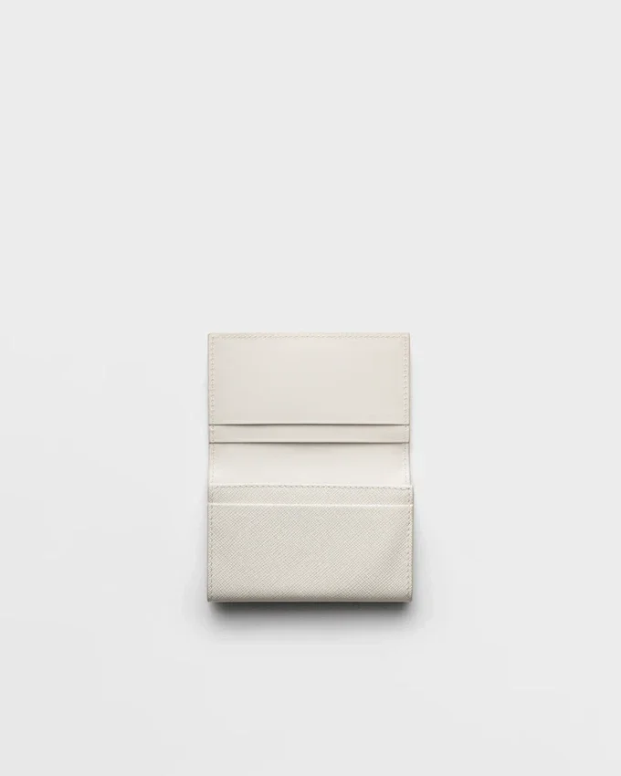 This Card Holder with a Sleek Design is Enhanced by the Unmistakable Crosshatch Texture with Waxed Finish of Saffiano Leather, Prada’s Iconic Material That Creates an Alluring Look That is Both Elegant and Pragmatic. The Accessory, Characterized by Four Card Slots, is Completed by the Iconic Signature of the Enameled Metal Triangle Logo.