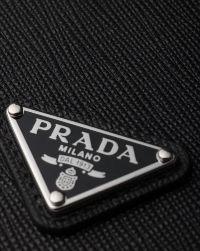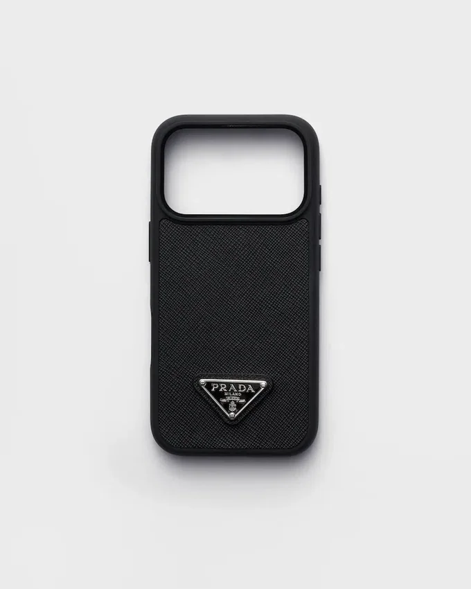 This Saffiano Leather Case for the Iphone 17 Pro Has a Sleek and Sophisticated Design Decorated with the Emblematic Enameled Metal Triangle Logo.