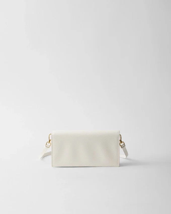 Saffiano Leather, an Emblematic Material of Prada Collections, Stands out for Its Crosshatch Pattern with Waxed Finish That Gives Each Design Versatile, Elegant Charm. This Mini-Bag Has a Sleek Yet Refined Geometric Shape, Illuminated by the Metal Hardware and Decorated with the Iconic Enameled Metal Triangle Logo.