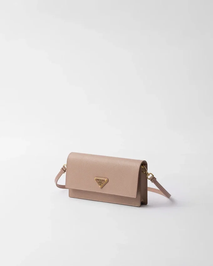 Saffiano Leather, an Emblematic Material of Prada Collections, Stands out for Its Crosshatch Pattern with Waxed Finish That Gives Each Design Versatile, Elegant Charm. This Mini-Bag Has a Sleek Yet Refined Geometric Shape, Illuminated by the Metal Hardware and Decorated with the Iconic Enameled Metal Triangle Logo.