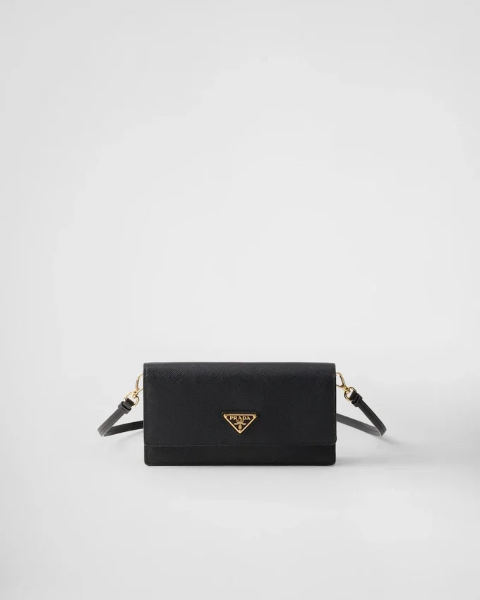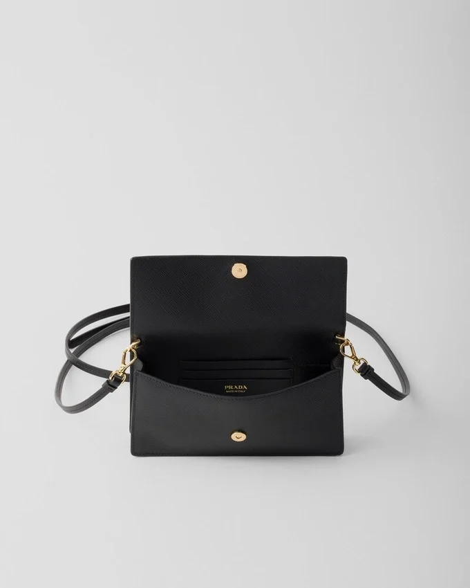 Saffiano Leather, an Emblematic Material of Prada Collections, Stands out for Its Crosshatch Pattern with Waxed Finish That Gives Each Design Versatile, Elegant Charm. This Mini-Bag Has a Sleek Yet Refined Geometric Shape, Illuminated by the Metal Hardware and Decorated with the Iconic Enameled Metal Triangle Logo.