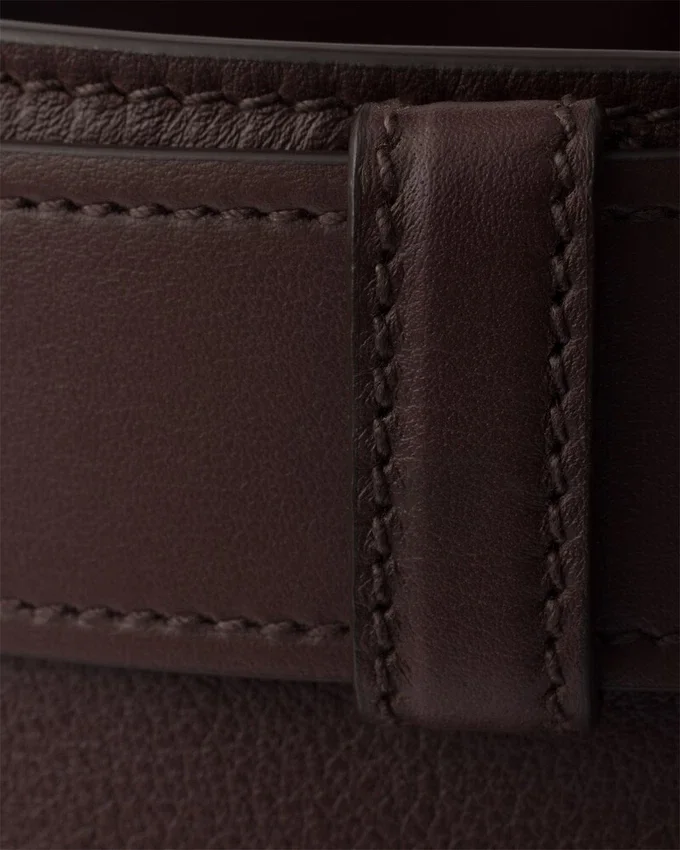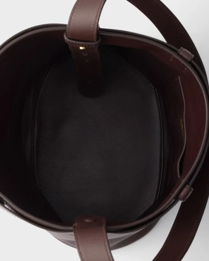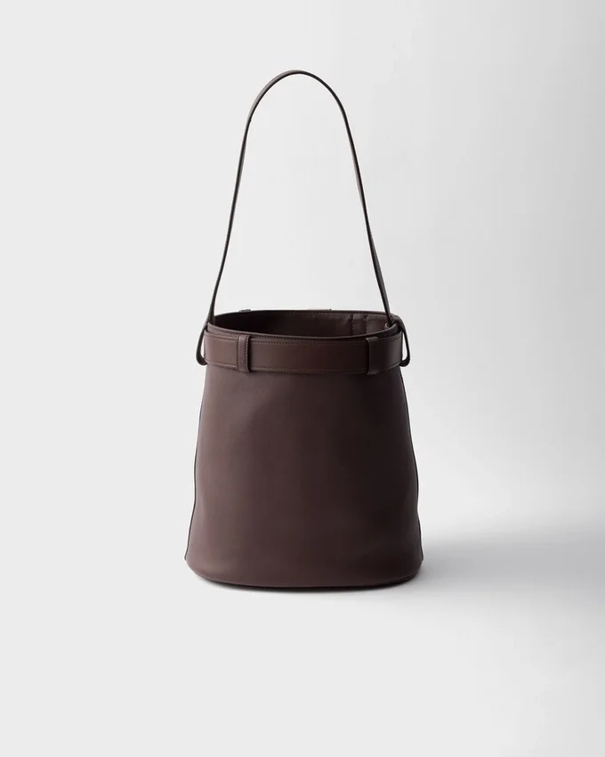 The Sophisticated and Modern Essence of the Prada Buckle Bag is Rediscovered in a New Bucket Silhouette with a Sleek Shape. The Belt with Iconic Buckle Enhances the Versatile and Contemporary Design.