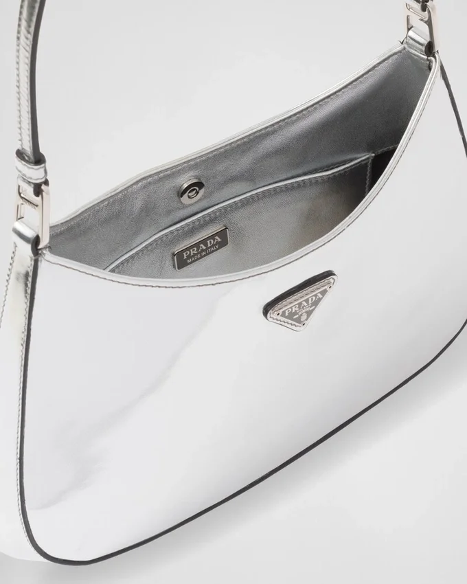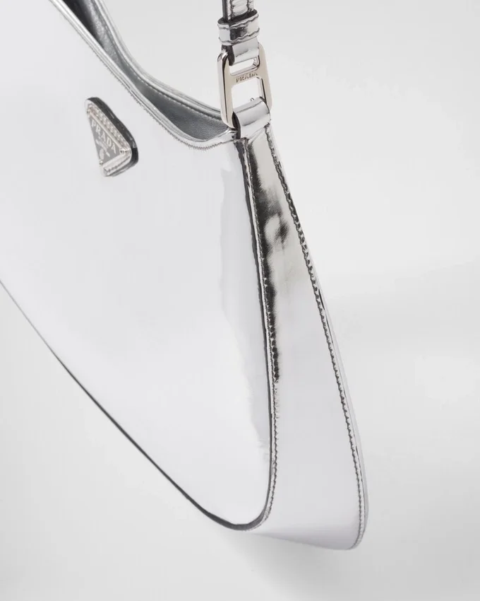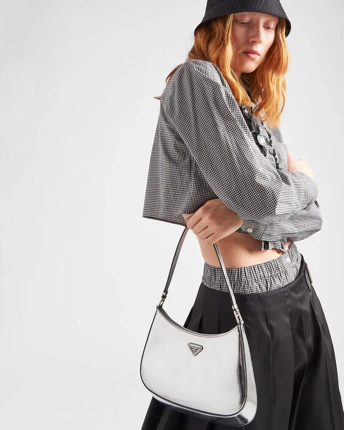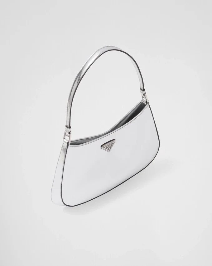 The Prada Cleo Bag with Sophisticated Allure Reinterprets an Iconic Design of the Brand from the 1990’S. Sleek Curved Lines Emphasized by the Particular Construction Rounded on the Bottom and Sides Give This Hobo Bag a Soft, Light Look. Brushed Leather, a Modern and Versatile Material That is Distinctive in Prada Collections, is Ideal for Creating Always New Combinations and Contrasts. The Enamel Triangle Logo Decorates the Silhouette.