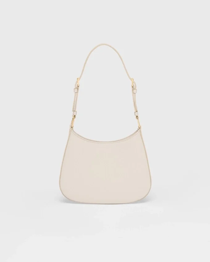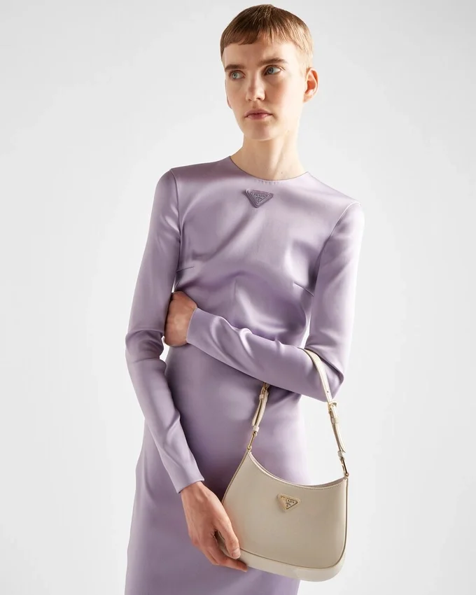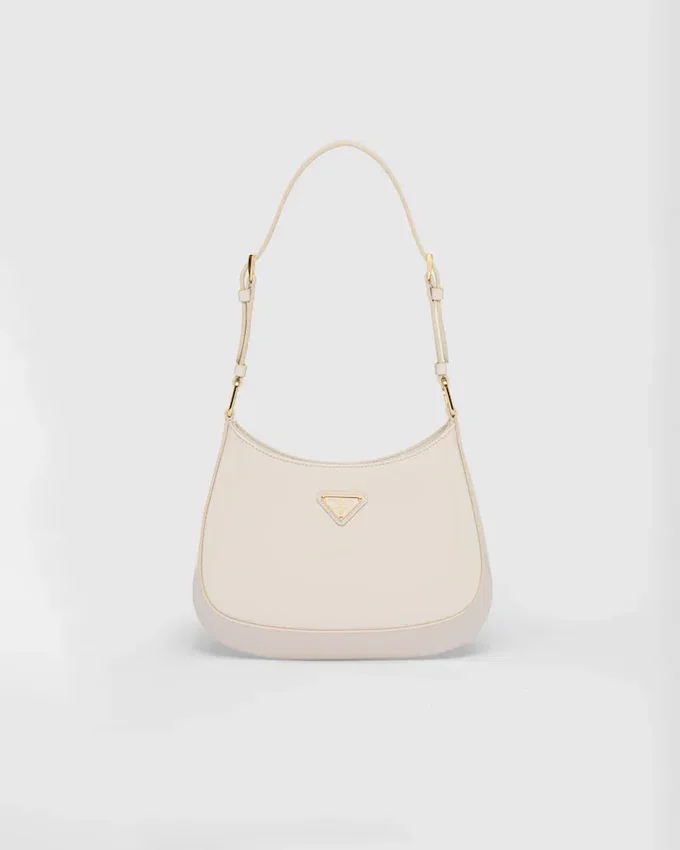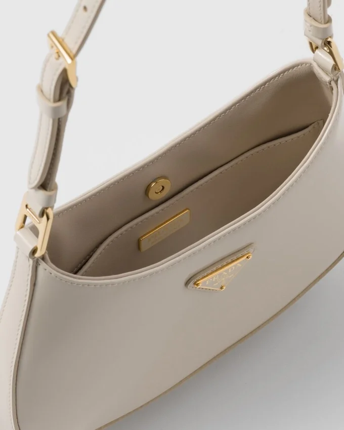 The Prada Cleo Bag with Sophisticated Allure Reinterprets an Iconic Design of the Brand from the Nineties. Sleek, Curved Lines Emphasized by the Distinctive Sloping Silhouette on the Bottom and Sides Give This Hobo Bag a Soft, Light Look. The Accessory is Made of Exclusive Patent Leather That Creates a Elegant Shiny Effect.