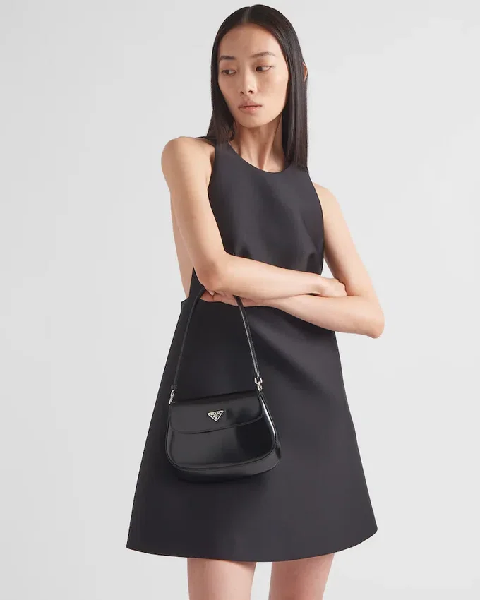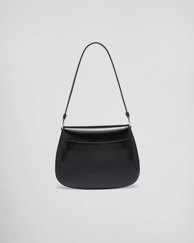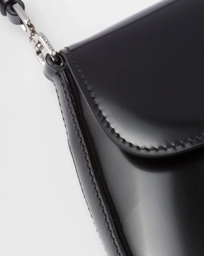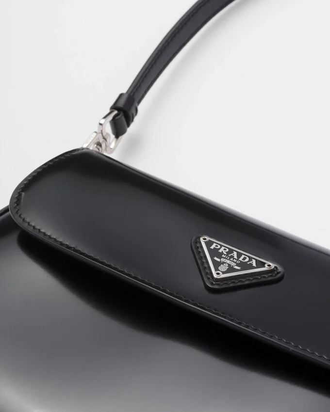 The Prada Cleo Bag with Sophisticated Allure Reinterprets an Iconic Design of the Brand from the 1990’S. Sleek Curved Lines Emphasized by the Particular Construction Rounded on the Bottom and Sides Give This Flap Bag a Soft, Light Look. Brushed Leather, a Modern and Versatile Material That is Distinctive in Prada Collections, is Ideal for Creating Always New Combinations and Contrasts. The Enamel Triangle Logo Decorates the Silhouette.