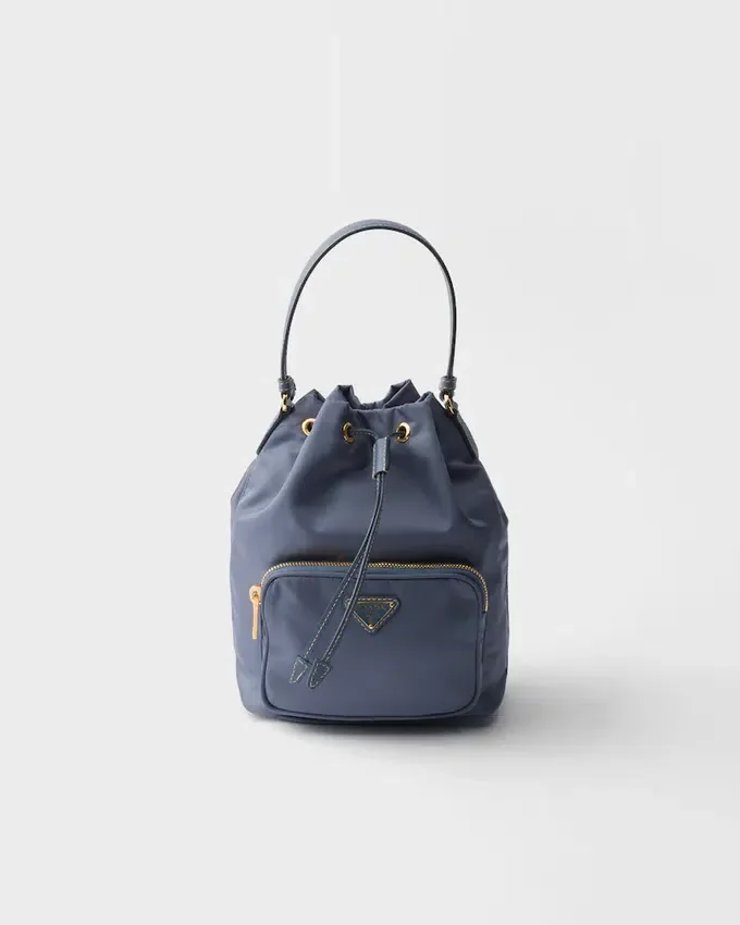 The Prada Duet Bucket Bag with a Soft, Versatile Silhouette Expresses a Contemporary, Functional Character. The Accessory Made of Re-Nylon is Characterized by an External Zipper Pocket and Can Be Carried by Hand or Worn as a Cross-Body Bag with the Leather Shoulder Strap. For Sustainable Care to Preserve the Product’s Characteristics and Reduce Microfiber Shedding, We Recommend Not Washing the Item Too Often. Let the Product Air out After Every Use and Have It Dry Cleaned at a Specialized Ecological Dry Cleaners.
