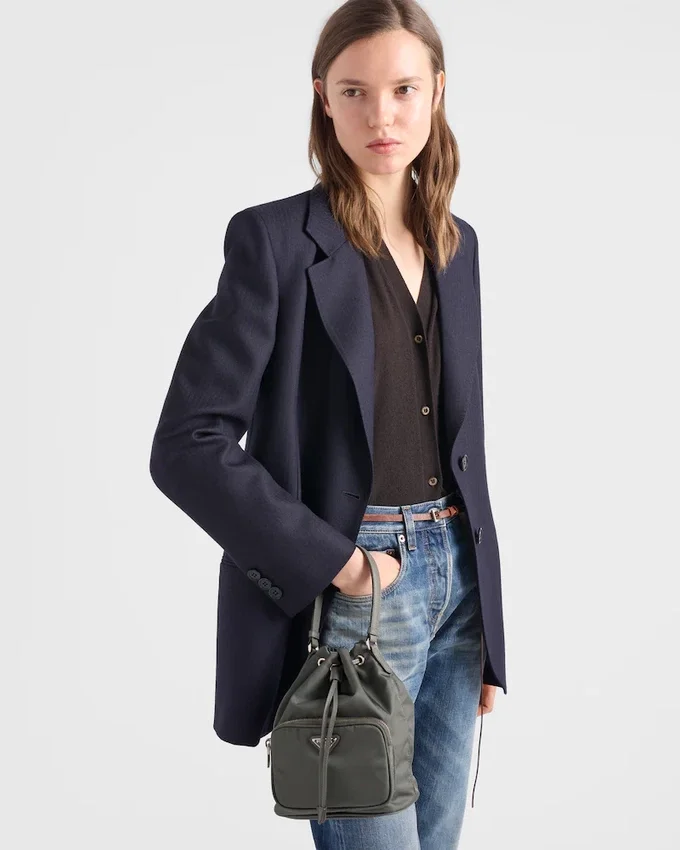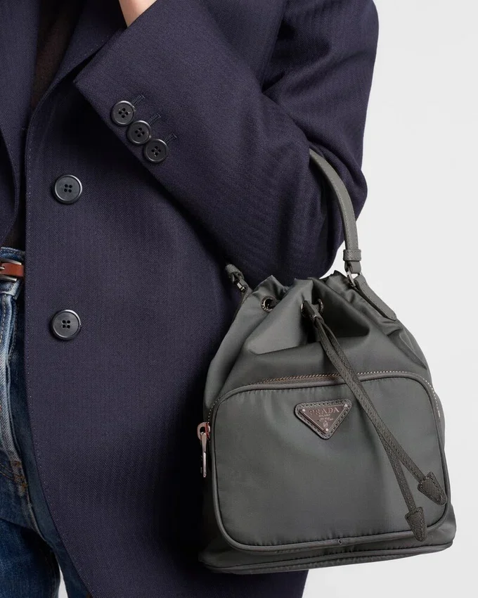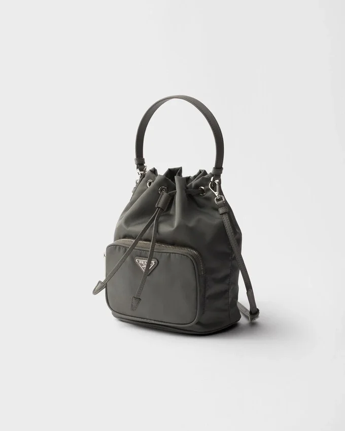 The Prada Duet Bucket Bag with a Soft, Versatile Silhouette Expresses a Contemporary, Functional Character. The Accessory Made of Re-Nylon is Characterized by an External Zipper Pocket and Can Be Carried by Hand or Worn as a Cross-Body Bag with the Leather Shoulder Strap. For Sustainable Care to Preserve the Product’s Characteristics and Reduce Microfiber Shedding, We Recommend Not Washing the Item Too Often. Let the Product Air out After Every Use and Have It Dry Cleaned at a Specialized Ecological Dry Cleaners.