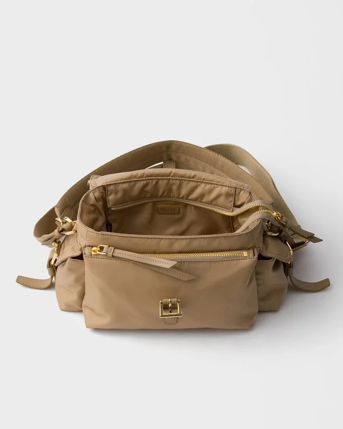 This Bag, a Perfect Synthesis of Refinement and Functionality, is Made of Re-Nylon with a Soft Silhouette and Multiple Pockets. The Light, Pragmatic Design is Defined by the Combination of Sporty and Versatile Elements with Iconic and Timeless Touches. The Accessory Completed with Leather Details is Decorated with the Enameled Metal Triangle Logo. For Sustainable Care to Preserve the Product’s Characteristics and Reduce Microfiber Shedding, We Recommend Not Washing the Item Too Often. Let the Product Air out After Every Use and Have It Dry Cleaned at a Specialized Ecological Dry Cleaners.